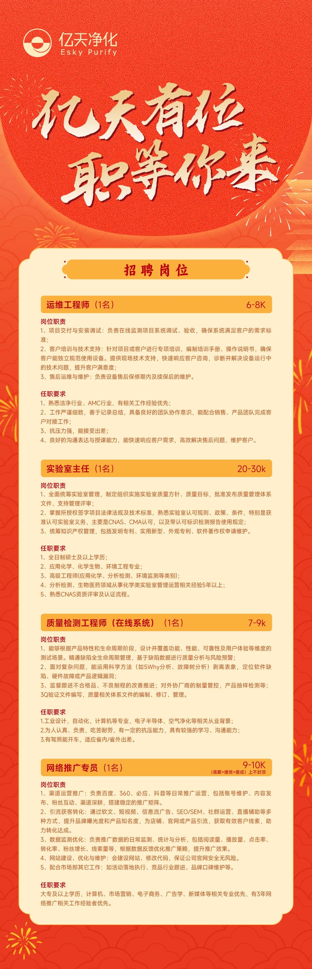 虛位以待,職等你來 | 億天凈化2026人才招募計劃正式啟動