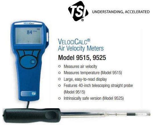 通風柜、噴淋室或通風系統檢查面風速的理想工具,還可以用于測量溫度,9515操作簡單,小巧便攜。